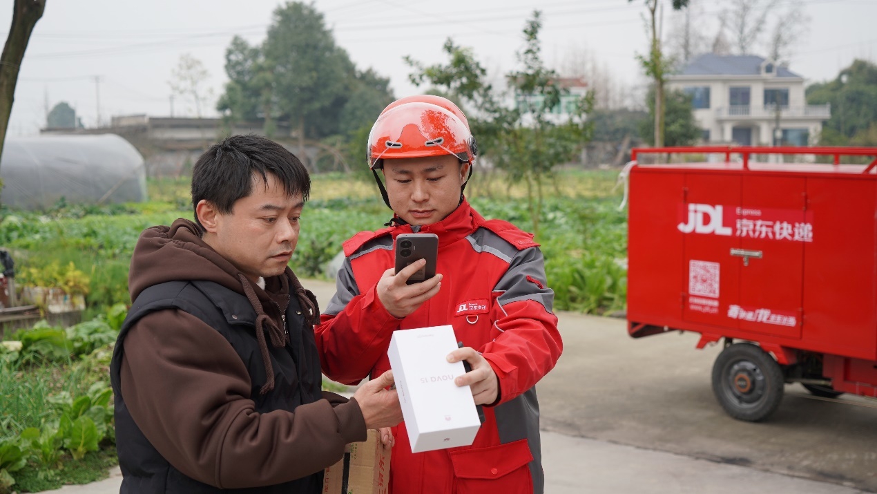 这是2026年京东送达乡村的第一单国补订单。两位京东小哥送货上门时,黄强欣喜中有点震惊:“这么快就送到村里了?”