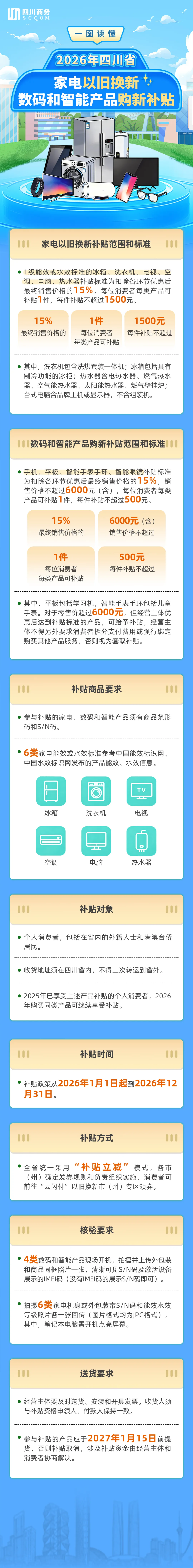 一图读懂|四川省2026年家电以旧换新、数码和智能产品购新补贴实施细则