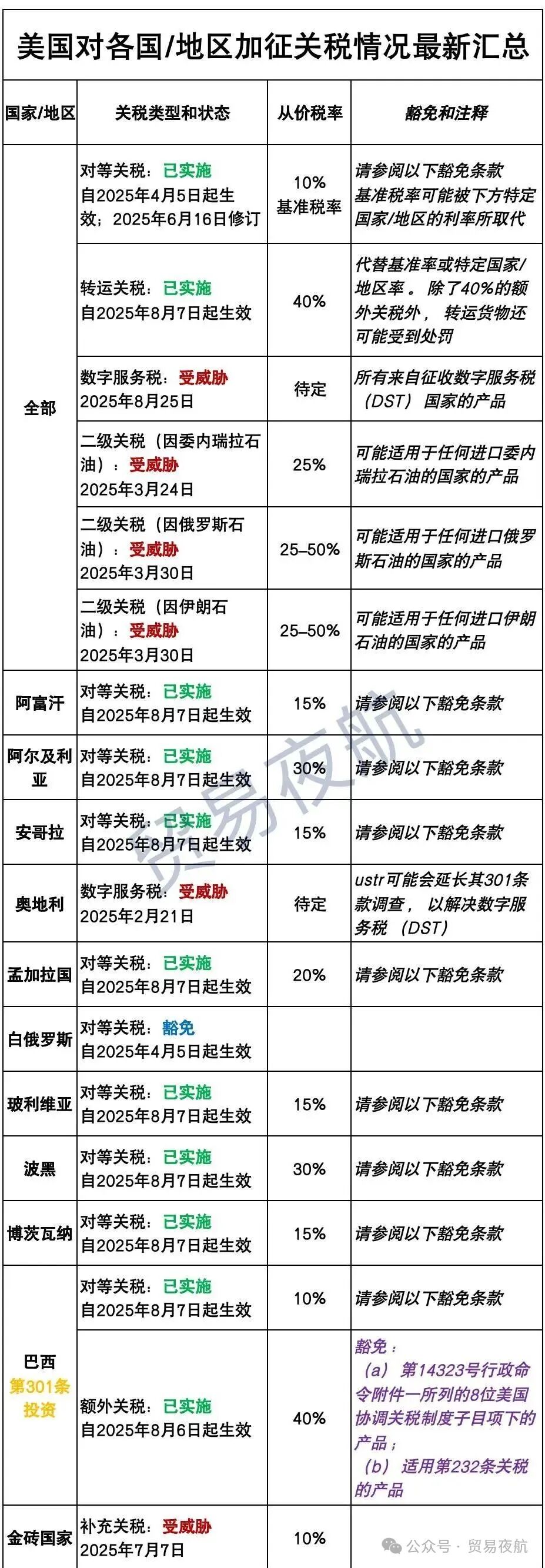 ⚠️ 针对特定商品的豁免清单第14257号行政命令(经修订)附件二所列的其他物品包括铜、药品、半导体、木材制品、某些关键矿产以及资源和能源产品。