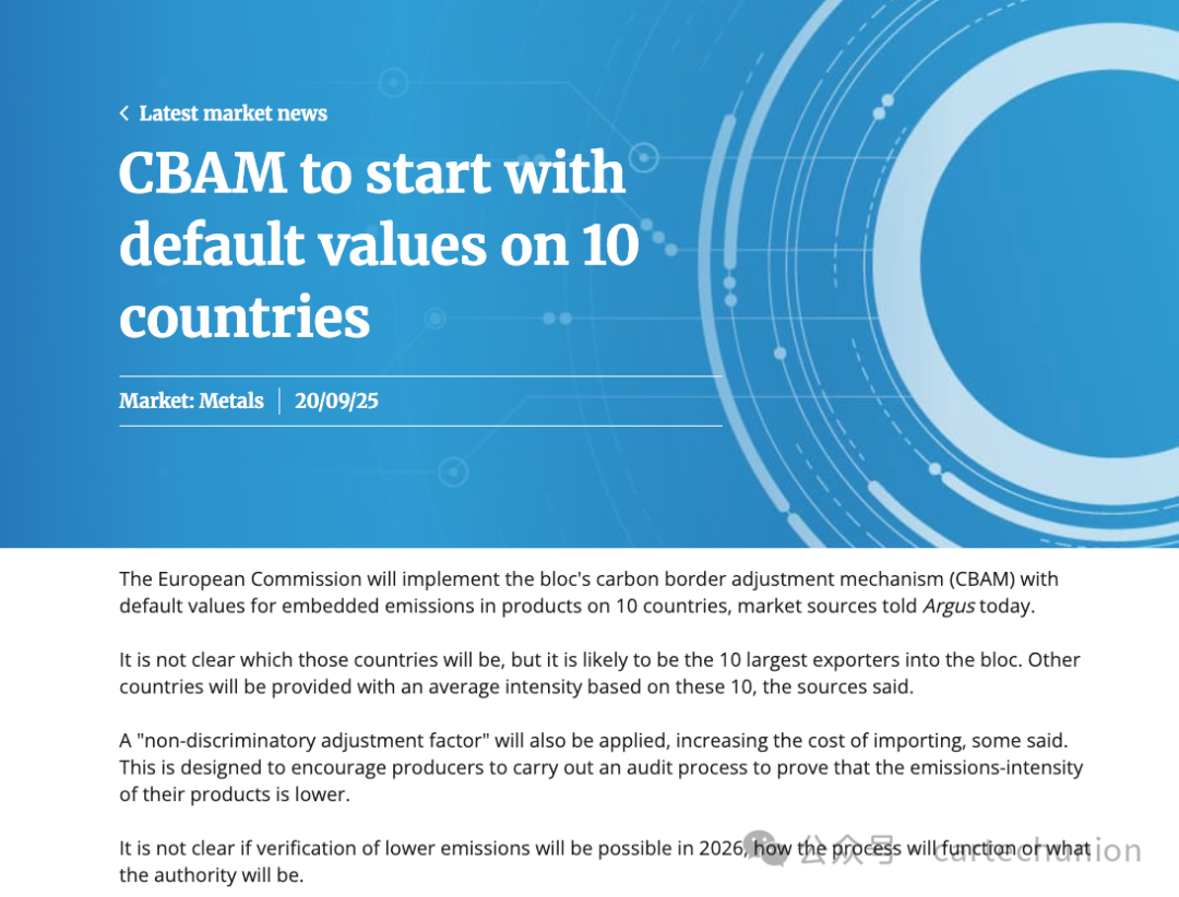 艾科森环境技术根据外媒透露,欧盟委员会计划在 10 个主要出口国实施碳边境调整机制 (CBAM),并对产品中嵌入的排放量设定默认值。若欧盟采用默认排放值,中国出口企业可能面临以成本压力显著增加等多方面冲击。