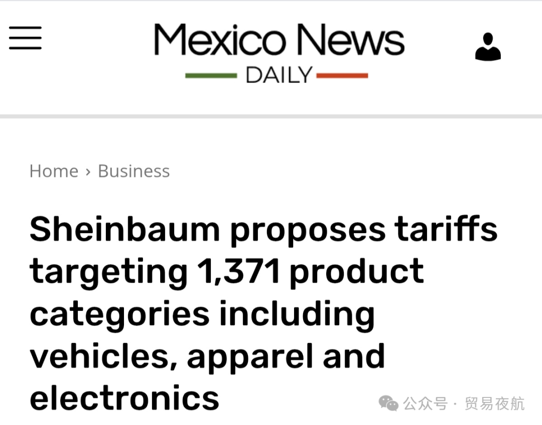📌 新关税将适用于 1371 个关税代码下的进口商品,占墨西哥所有关税代码的 16.8%。