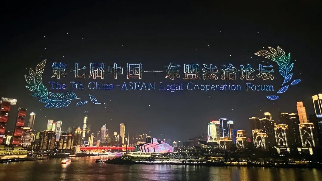 2025年11月20日,“新韵重庆”无人机灯光秀第七届中国—东盟法治论坛主题展演。 孙雅南/摄