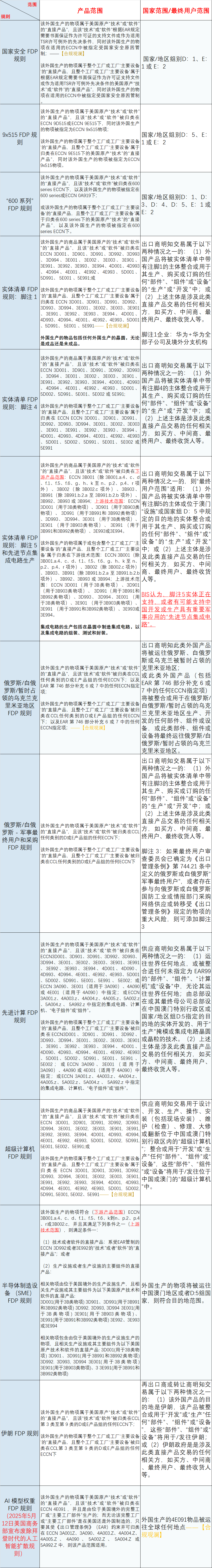 最新修订的美国EAR中细分包括13项外国直接产品规则,需根据产品的构成、最终目的和最终用户的不同,判断是否需要适用不同的外国制造直接产品规则,具体包括: