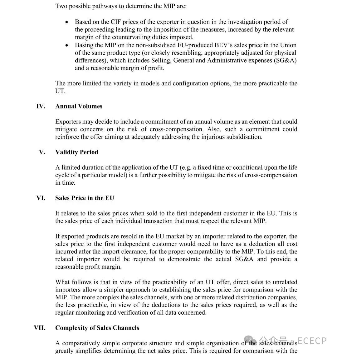 同样,若企业没有向欧盟同一客户出口其他非约束产品(如混动汽车),也有助于限制与反补贴措施覆盖范围外产品之间的交叉补贴风险。