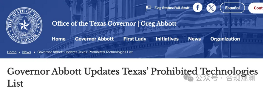 当地时间2026年1月26日,美国德克萨斯州长格雷格·阿博特(Greg Abbott)更新了德州针对州政府雇员和设备的禁用技术清单。据称此次更新是在与德州网络司令部(Texas Cyber Command,TXCC)司令、海军中将(退役)TJ·怀特协商后进行的,新增了对与中国相关的硬件、人工智能(AI)和软件的限制。