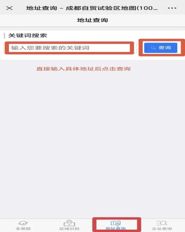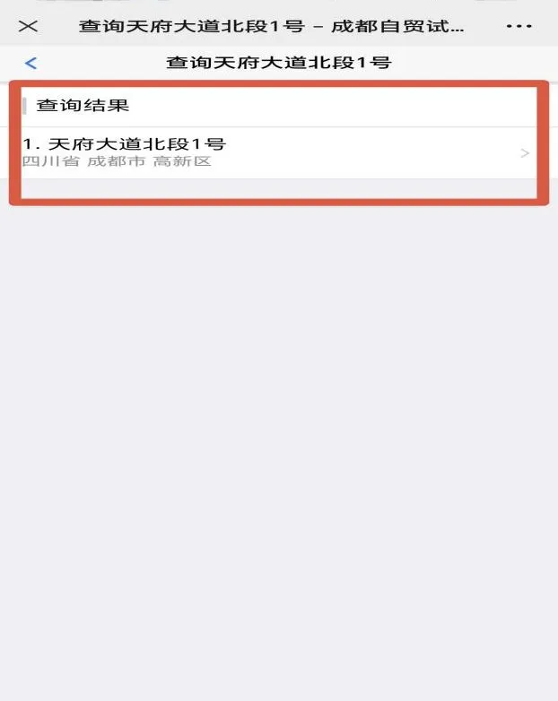 若“查询结果”下方显示所查询地址,则该地址属于四川自贸区法院管辖。若“查询结果”下方系空白,则进入下一步。