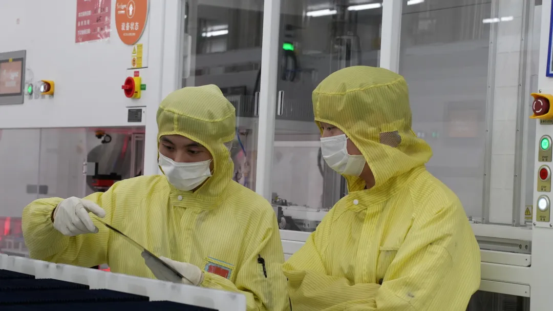 宜宾光伏生产基地内,工作人员检查成品质量。 宜宾观察 罗顺 摄