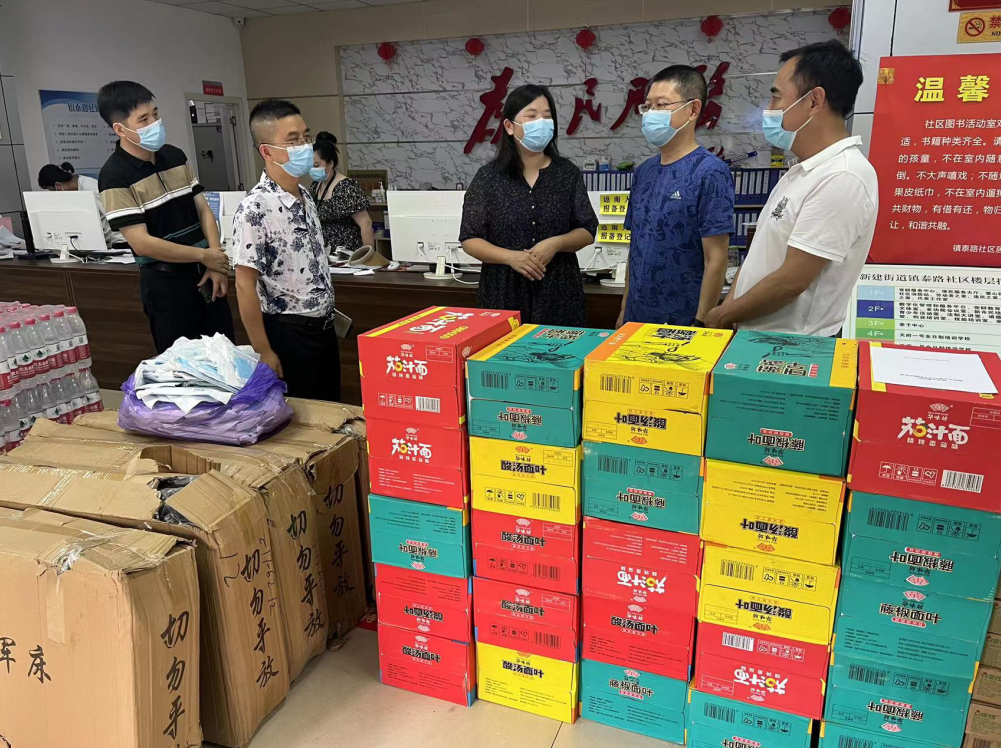 在志愿服务协同抗疫的同时,为支持“双报到”联系社区疫情防控,加油鼓劲齐努力、同心抗疫保平安,8月25日下午,南充市商务局党委委员、副局长吴成国带领局机关党支部党员深入顺庆区新建镇泰路社区了解疫情防控情况,送去了捐赠的方便面、火腿肠、矿泉水、口罩及单人行军折叠床等物资,解了社区的燃眉之急,对战斗在抗疫一线的社区工作者和志愿服务者表示慰问和感谢,并鼓励大家增强战胜疫情的信心和决心,团结一心、众志成城,坚决打赢疫情防控阻击战攻坚战,以实际行动为党旗增辉、为党徽添彩。