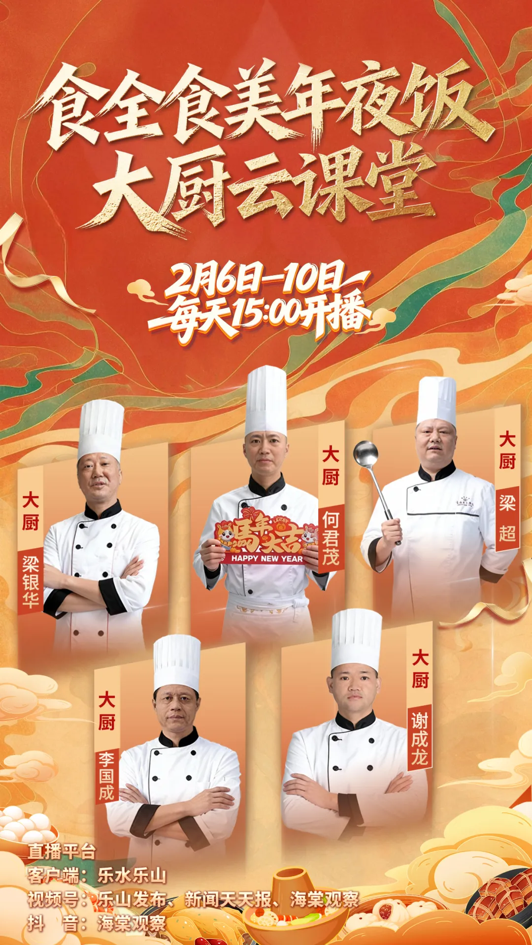 在家也能做大师菜!中国烹饪大师连续5天直播教学,教你做临江鳝丝、嘉州脆皮鱼等地道乐山年菜,互动还能赢取德昌源豆腐乳、全华酱油、万弗藤椒油等老字号特产礼包。