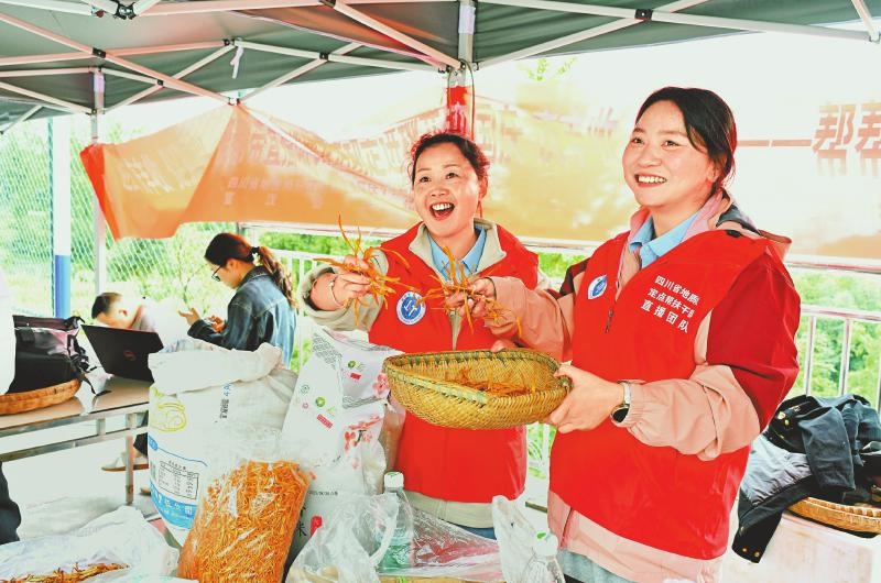 省地质局驻宣汉帮扶干部开展网络直播,助力地方农副产品销售。