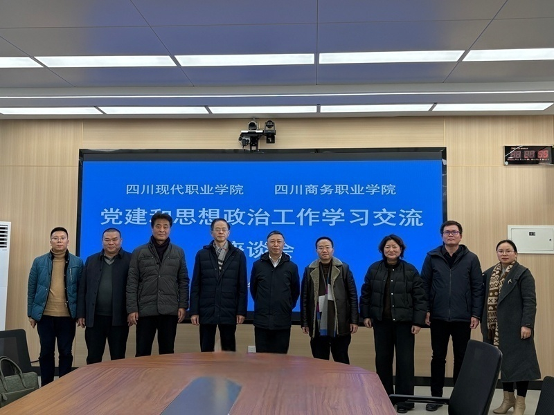 | 1月7日,四川商务职业学院与四川现代职业学院举行座谈会,开展党建和思想政治工作结对共建。会议由学院党委委员、副院长王军主持,学院党委书记唐柯出席会议并讲话。