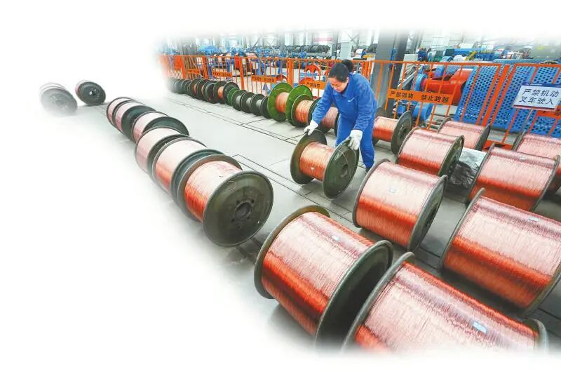 四川欧能电缆集团有限公司生产车间,工人整理新生产的电缆产品。钟敏 摄(C视觉)