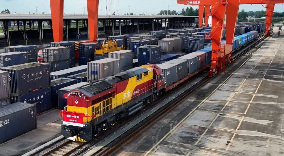 今年7月,一列从德阳发往钦州港的西部陆海新通道班列。(图片由四川省陆海新通道发展有限公司提供)