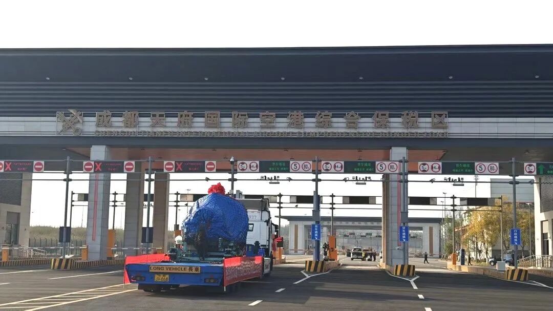当天上午,一辆装载空客A321飞机发动机的货柜车在成都海关关员的监管下,缓缓驶入天府综保区卡口通道,智能系统自动采集车牌、重量等信息,并实时上传至海关总署保税监管系统,数据验核无误后,卡口自动抬杆放行,整个通关流程耗时不到1分钟。