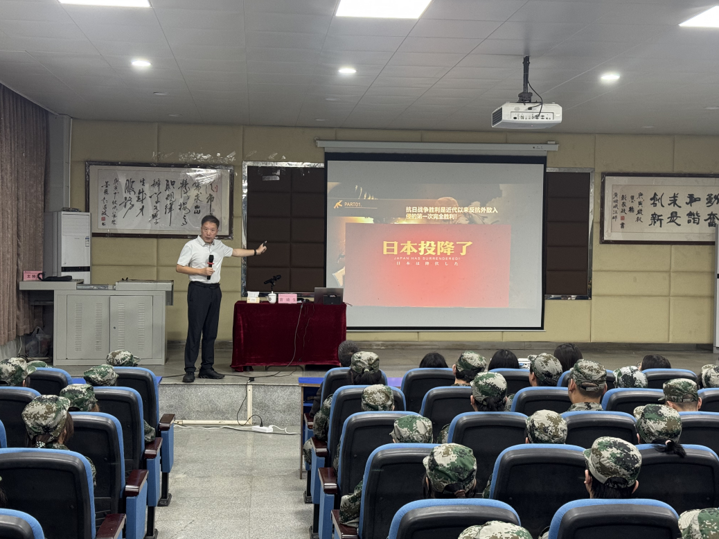 官培生以“纪念中国人民抗日战争暨世界反法西斯战争胜利80周年阅兵式”为切入点,通过大量的珍贵影视史料与相关案例,深入解读了中国共产党在抗战中发挥的中流砥柱作用,深刻阐释了伟大抗战精神的时代价值,强调新时代青少年应传承“铭记历史、缅怀先烈、珍爱和平、开创未来”的精神内核,以抗战精神为指引,在实现中华民族伟大复兴的征程中勇担使命、砥砺前行。
