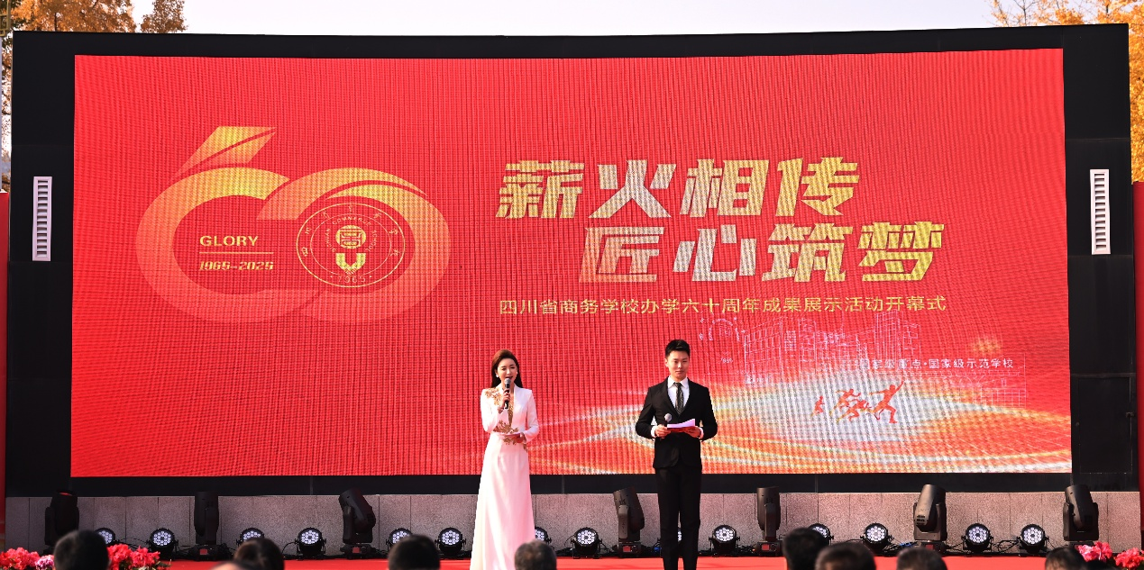 | 六十载栉风沐雨,耕耘不辍;一甲子薪火相传,匠心筑梦。2025年12月5日,四川省商务学校以“薪火相传 匠心筑梦”为主题,圆满举办了六十周年办学成果展系列活动。本次活动既是一次对办学历程的深情回望与育人成就的精彩呈现,更是一次凝聚力量、擘画未来新篇的庄严宣告。