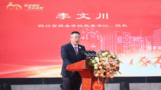 四川省商务厅党组书记、厅长惠朝旭充分肯定了学校六十年来的办学成就,勉励学校围绕全省重点产业链布局优化专业设置,聚力打造大师级的教学队伍,用心用情服务学生高质量就业,早日建成全国一流的商务特色职教名校。