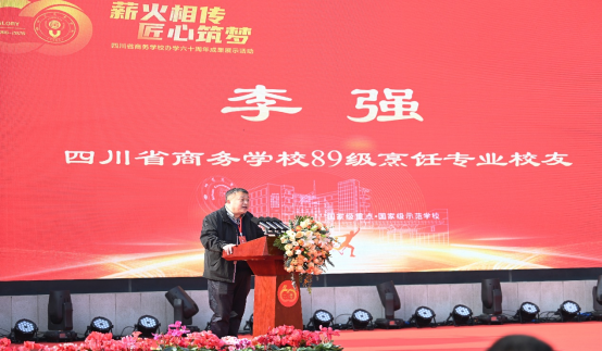 校友代表北京老川办餐饮有限公司总经理李强分享了在校求学的青春记忆,并现场分享了自己三十年餐饮路:真正的川菜大师,不一定是技艺最顶尖的那一位,但一定是最懂得尊重老师、注重食材、敬畏传统、心怀食客的人。