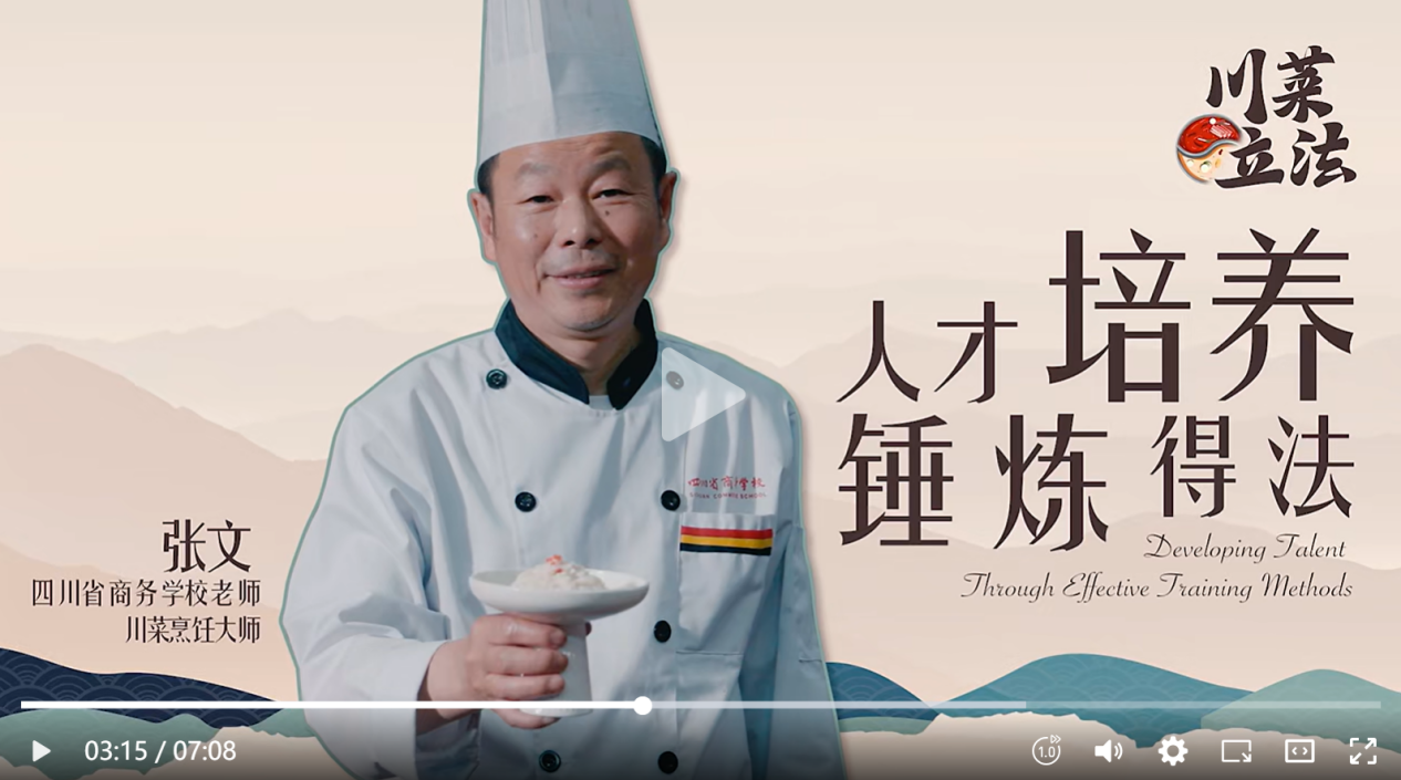 《条例》实施前夕,由四川省人大常委会办公厅、四川省人大经济委、四川广播电视台视频创意制作中心联合出品的《四川省促进川菜发展条例》宣传片来我校取景拍摄。宣传片以“地方立法 川菜飘香”为题,选取4位有代表性的川菜从业者结合各自经历,从产业促进、人才培养、文化传承、创新发展四个维度,以人物的真情实感对条例内容进行形象化解读。我校烹饪系张文老师的雪花鸡淖课堂在宣传片第二篇“人才培养,锤炼得法”中精彩呈现。课堂上,张文老师以“雪花鸡淖”这道川菜经典名菜为切入点,既深入讲解“一菜一格,百菜百味” 的川菜文化精髓,又鼓励同学们利用现代手段敢于突破,通过“精雕细琢”的人才培养模式,在守护与变革中推动川菜持续发展。
