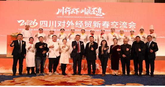 | 1月23日,由四川省商务厅主办的“川行天下·川流不息”2026四川对外经贸新春交流会在成都举行。交流会诚邀外国驻川领事机构、经贸促进机构、商协会及企业代表,共同探讨展望四川对外开放与经贸合作新机遇。作为四川省商务厅下属职业院校,我校师生代表携多元技艺参会,在交流会现场的“味美四川·美食品鉴区”,集中展示特色项目,既呈现川蜀文化魅力,更凸显职业教育国际化的实践成果。