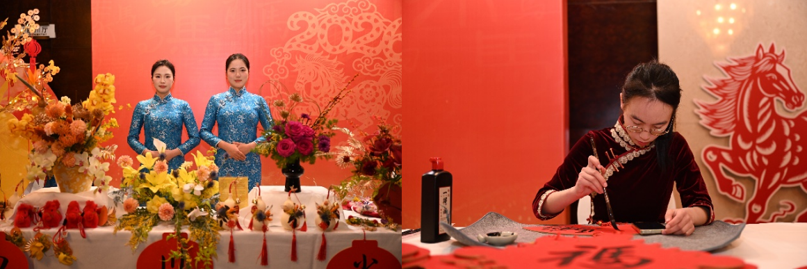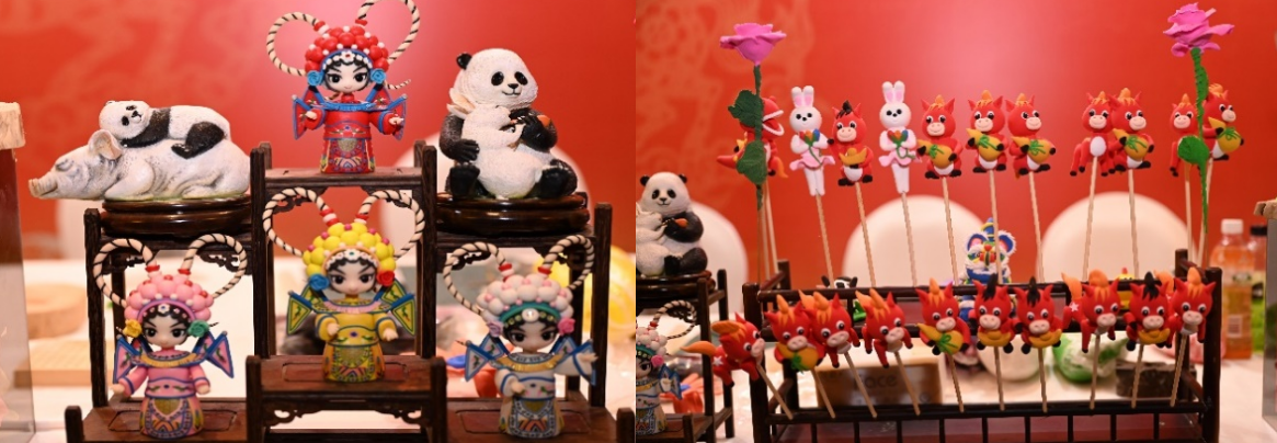 交流会上,我校展示区成为“职教国际化”的鲜活窗口:烹饪专业师生身着标准化厨师服,以双语解说的方式,向国际嘉宾介绍熊猫汤圆、大刀金丝面等川味小吃的技艺标准与文化内涵,同步展示“中餐烹饪国际化教学规范”中的实操流程;非遗面塑、毛笔书法项目的师生,主动与外国嘉宾互动,邀请其体验简易面塑造型、临摹书法汉字,以技能为桥梁打破语言壁垒;艺术插花作品则融合了川派花艺与国际花艺设计理念,适配海外市场审美偏好,展现职业教育“本土化技艺+国际化表达”的培养思路。现场嘉宾不仅品尝美食、体验技艺,更有经贸机构代表现场咨询“川味技艺国际化培训”合作方向,体现了职业教育服务对外经贸合作的实际价值。