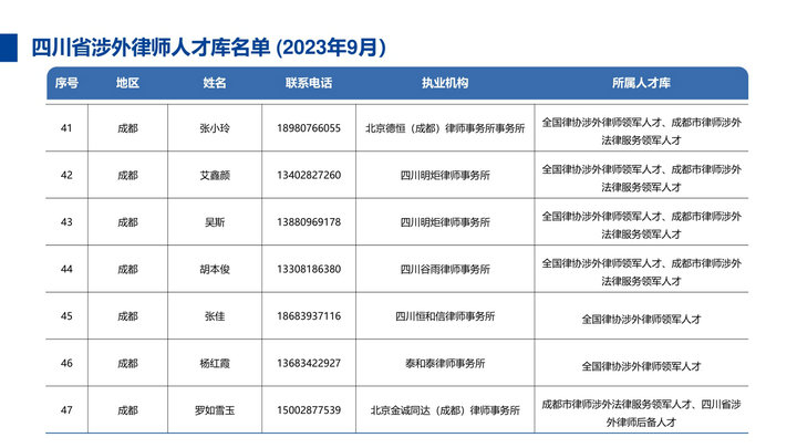 四川律师涉外法律服务优势领域清单及四川省涉外律师人才库名单(第一版)